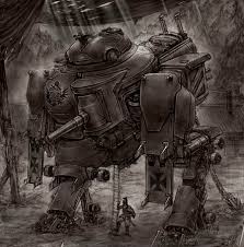 In questo mondo alternativo anche gli studi meccanici si sono evoluti secondo linee differenti e pur essendo l'aviazione ferma agli aeroplani e agli zeppelin di inizio '900, modello "Barone Rosso", l'esercito di terra può contare su carri armati che invece di muoversi su cingoli hanno le gambe.